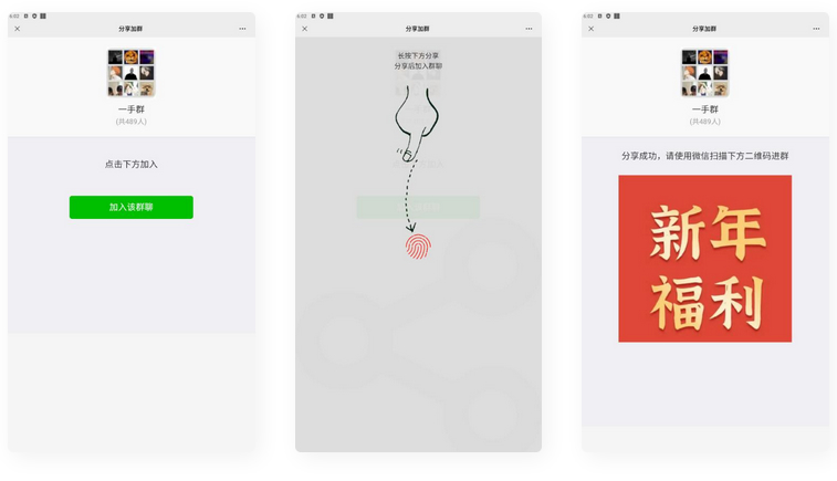 分享成功后会出现加群的二维码。扫码后即可进群。