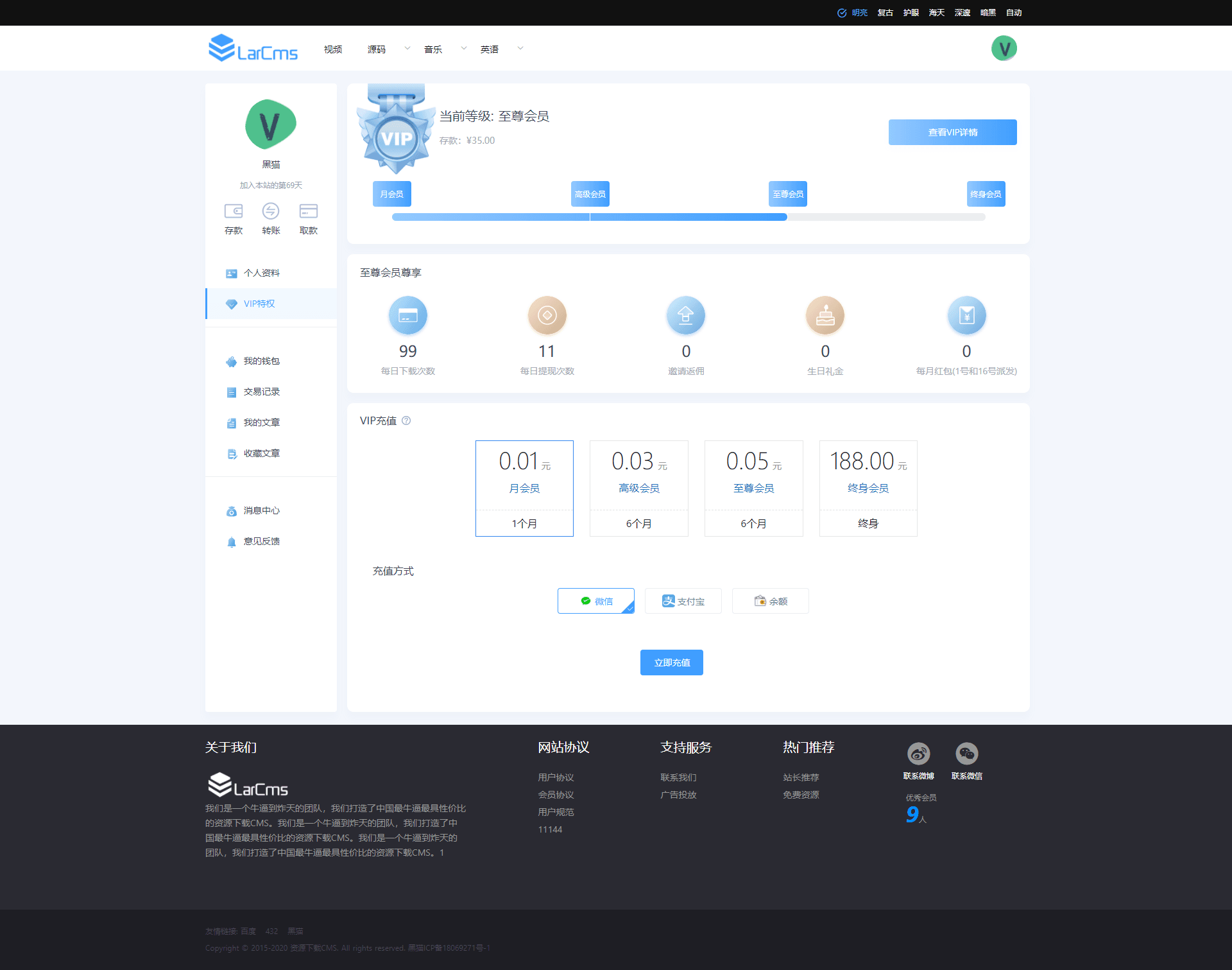 LARCMS历经1年完善,使用NUXT2+Laravel8前端后端分离全部100%开源,采用会员制度下载付费,集成支付宝微信等支付系统。