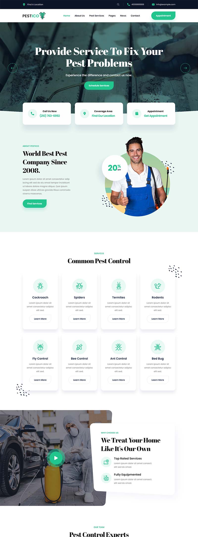 一款大气响应式的害虫防治,害虫服务,专业有害生物防治服务专项机构网站模板。