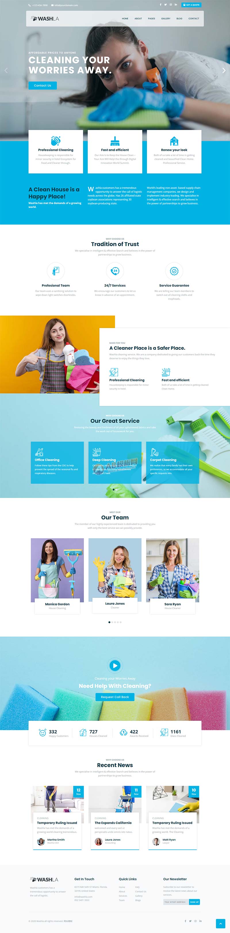 一款大气的保洁清洗服务网站HTML模板,非常适合商业类清洁服务,公寓清洁,家庭清洁。该模板包含各种各样的页面,可定制的,易于理解,而且它是用最新的web标准构建的。完全响应式布局。