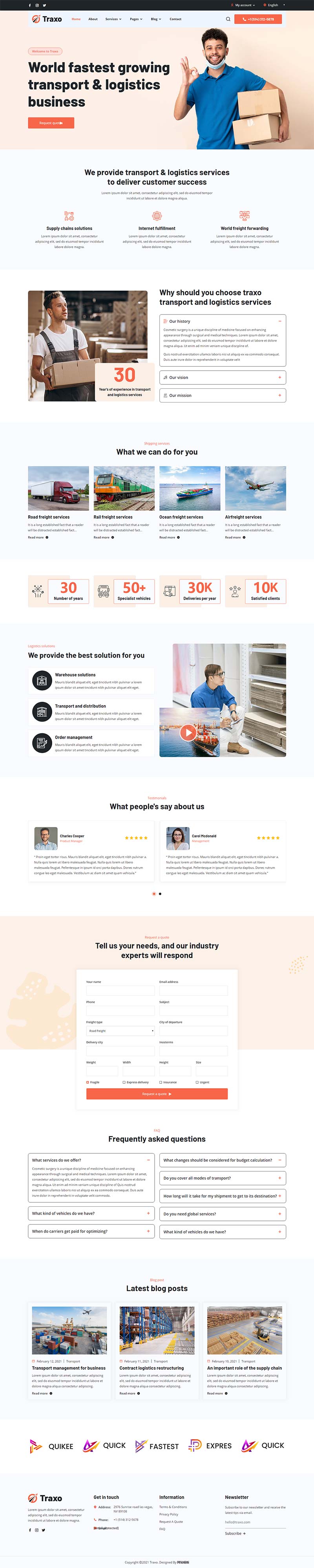 一款响应式的货物运输和快递物流网站HTML5模板。适用于:货物、运输、装运、卡车运输、运输公司、运输卡车、运输巴士、汽车运输、班车接送、搬家类公司网站。