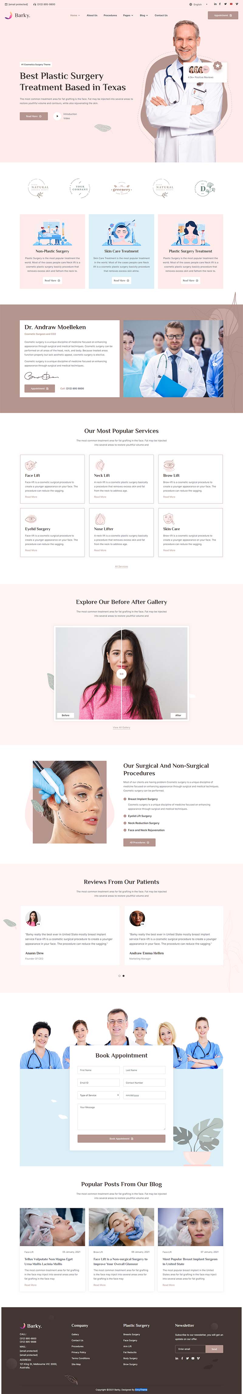 一款创意现代化的美容整形医生和美容医院诊所网站bootstrap模板。适用于:医生诊所、医院、医生咨询中心、整容手术中心、医学实验室、牙科诊所、百年门诊、药房等,也适用于外科医生、牙医、兽医、精神病医生、心理学家、眼科医生、全科医生等医疗保健专业人士,理疗师,或妇科网站模板。