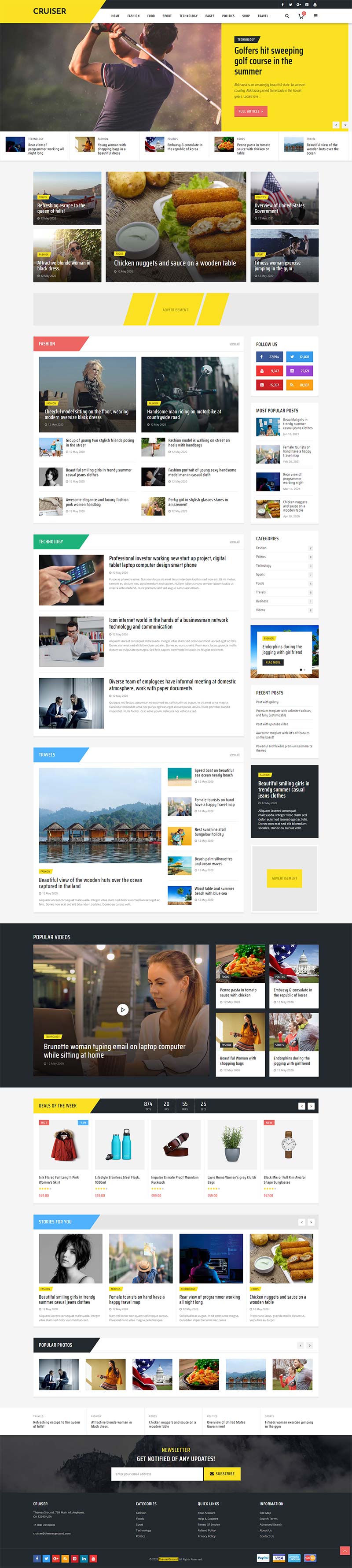 一款大气响应式的时尚娱乐资讯,新闻杂志博客网站模板。此模板非常适合任何博客/杂志类,如博客、体育、时尚、科学、足球、政治、视频、旅游、时尚、美容、个人和健康杂志网站等。