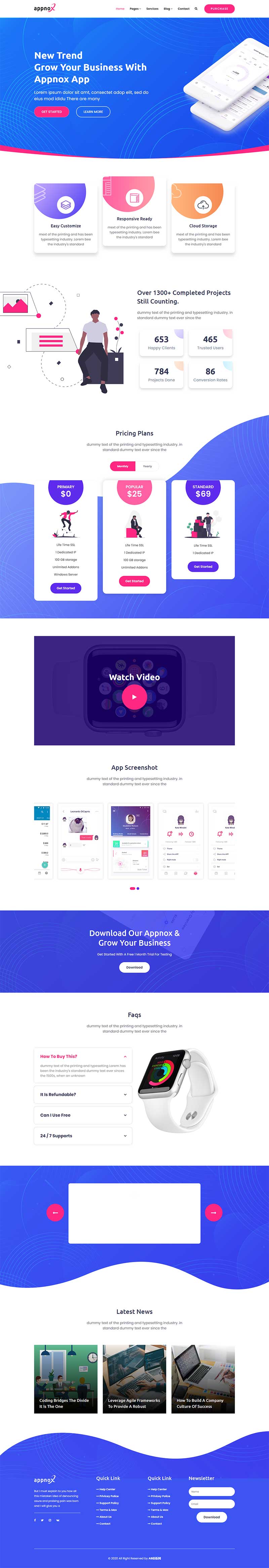 一款手机app应用程序软件官网HTML5模板。可用于:产品介绍,软件功能展示网站。你可以很容易地编辑这个HTML5模板,它是100%响应式布局可定制。所有代码均可编辑。这个HTML5模板非常适合转换成WordPress、织梦和其他CMS。包含8个页面。您可以轻松编辑此模板并在几分钟内替换图片。