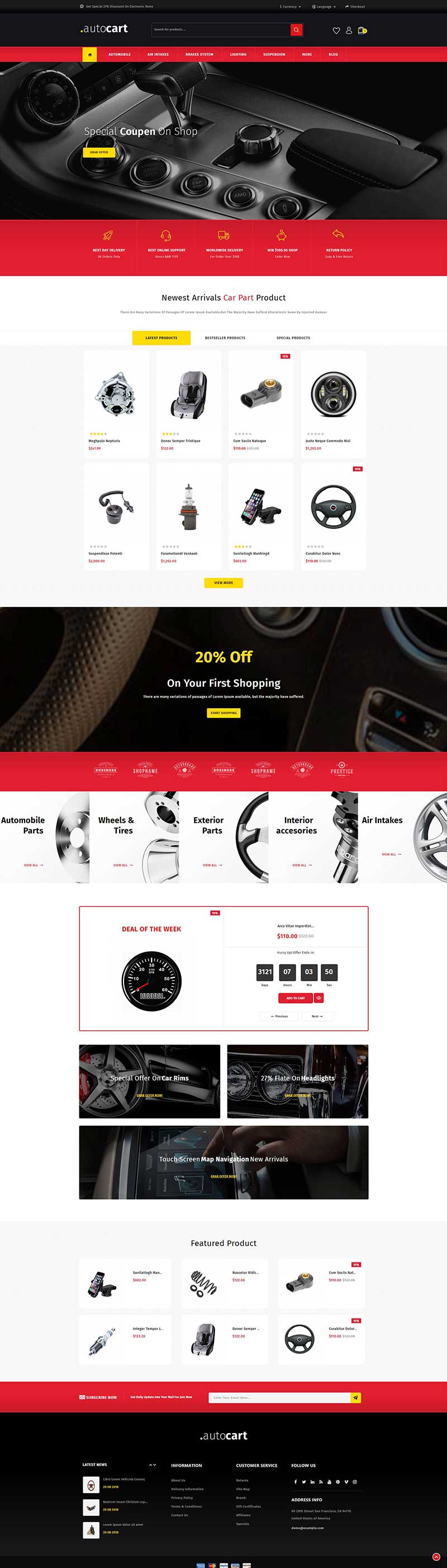 一款红色主题设计的高端大气的html汽车零件电商网站模板,该模板包含170个html有效文件,通用的商城UI适合销售汽车配件、零部件、汽车车间、汽车修理、汽车服务中心和所有类型的汽车商店。