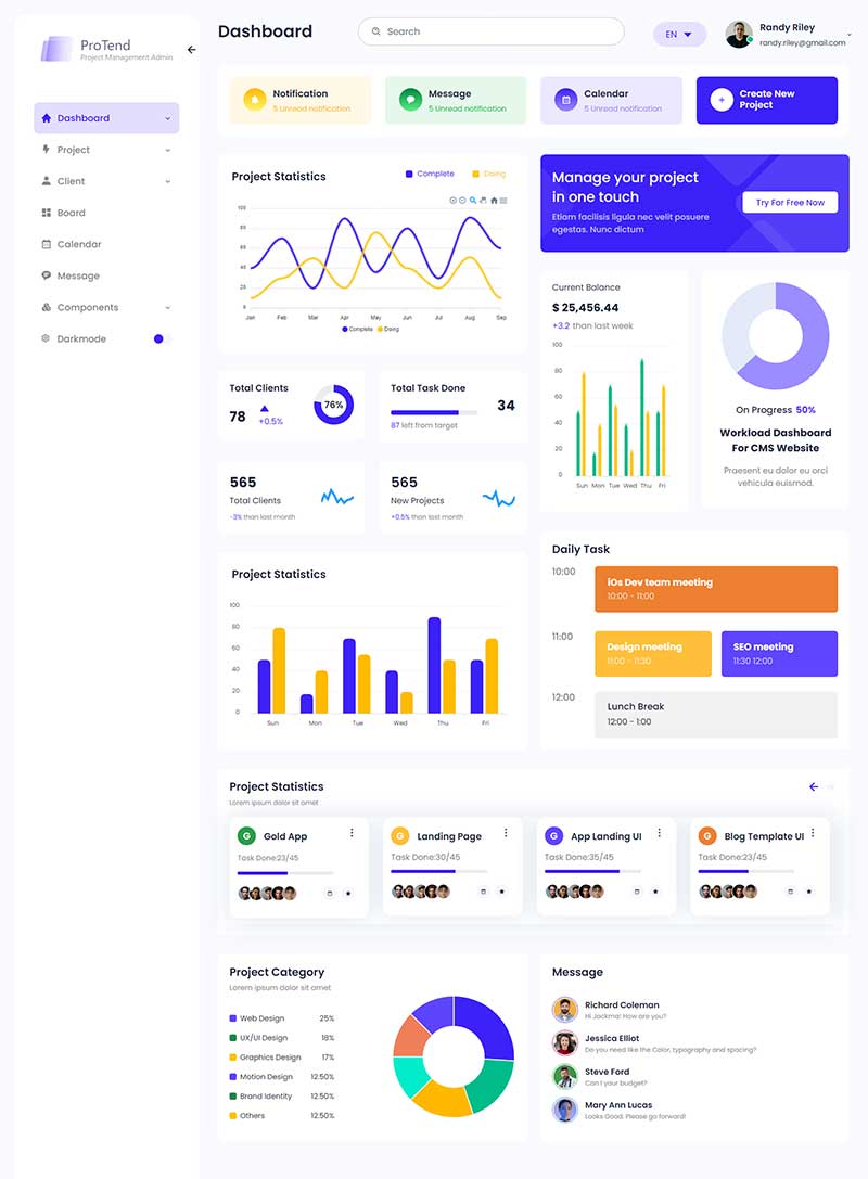 一款简约又实用的项目管理后台管理HTML模板,它有多种菜单不同的布局和2种浏览模式(白天和夜间),您可以使用这套框架创建任何类型的管理系统。
