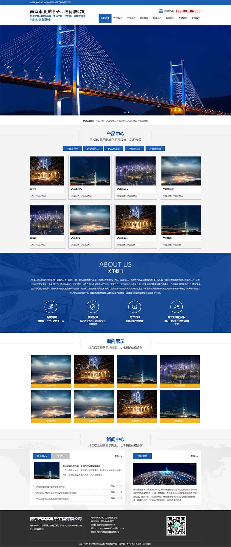 PbootCMS内核开发的网站模板,该模板适用于亮化工程网站、照明工程网站等企业,当然其他行业也可以做,只需要把文字图片换成其他行业的即可;