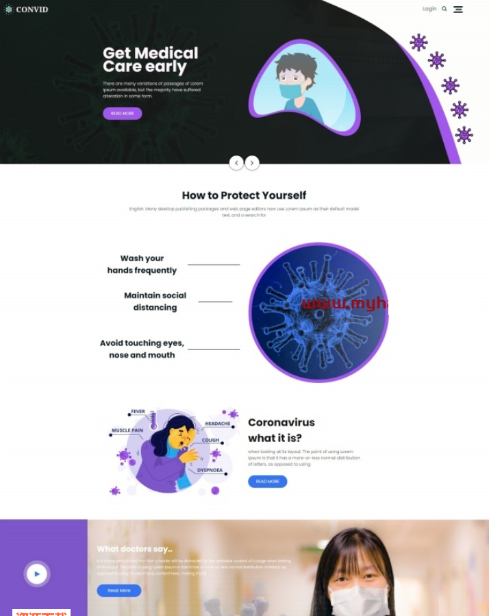 预防新冠肺炎医疗保健网站模板是一款预防新冠肺炎宣传、治疗、保健服务的医疗机构网站模板下载。提示:本模板调用到谷歌字体库,可能会出现页面打开比较缓慢。