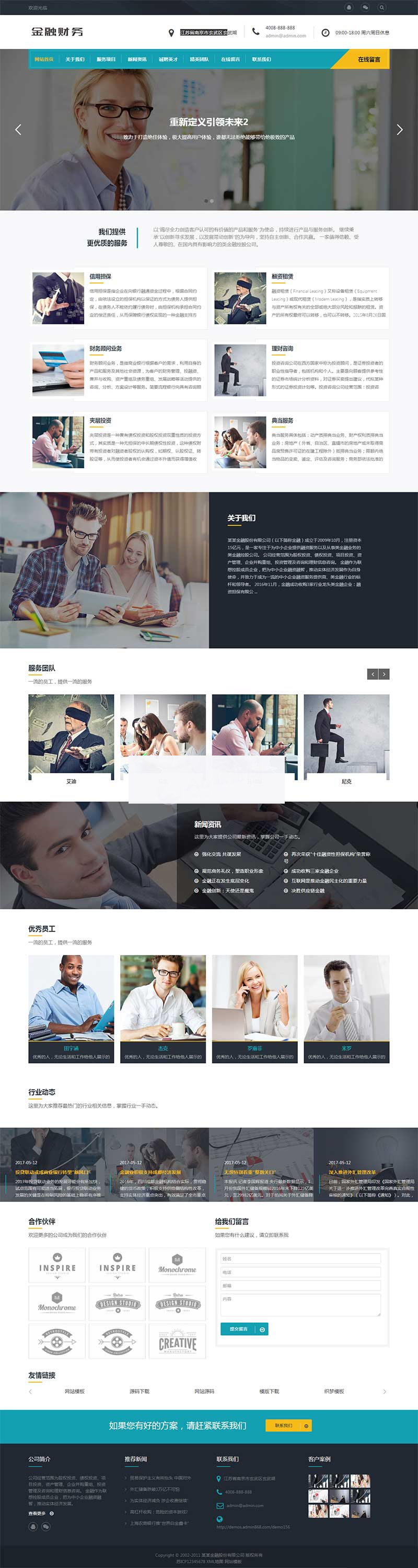 本套织梦模板采用织梦5.7内核开发的模板,这款模板使用范围广,不仅仅局限于一类型的企业,金融信贷网、金融投资管理类的网站都可以用该模板。你只需要把图片和文章内容换成你的即可,颜色都可以修改,改完让你耳目一新的感觉!布局规整,利于用户体验,手工书写DIV+CSS,代码精简。
