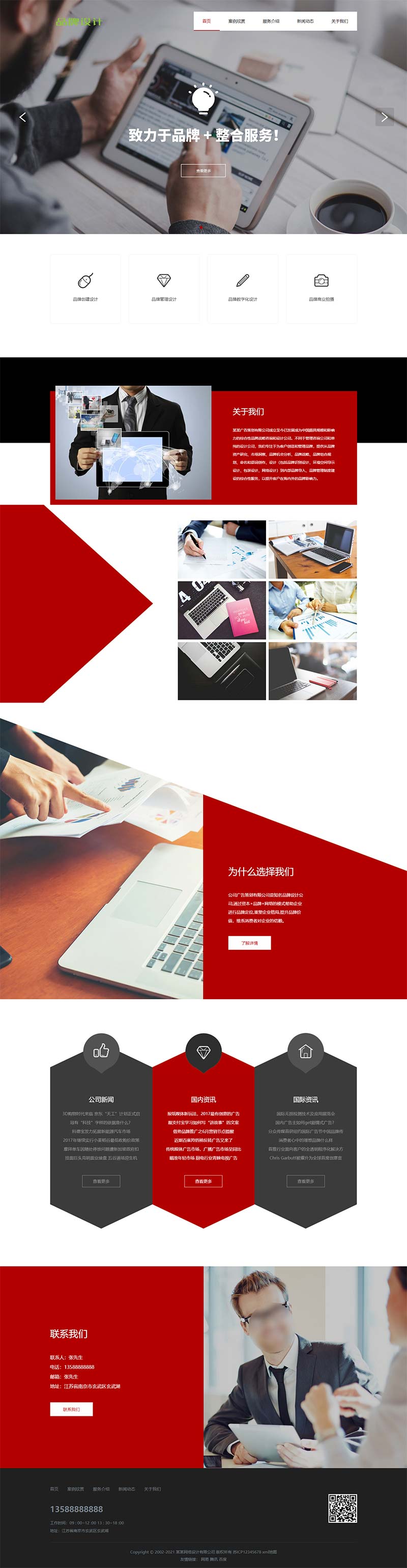 本套织梦模板采用织梦5.7内核开发的模板,这款模板使用范围广,不仅仅局限于一类型的企业,广告设计、设计公司类的网站都可以用该模板。你只需要把图片和文章内容换成你的即可,颜色都可以修改,改完让你耳目一新的感觉!布局规整,利于用户体验,手工书写DIV+CSS,代码精简。