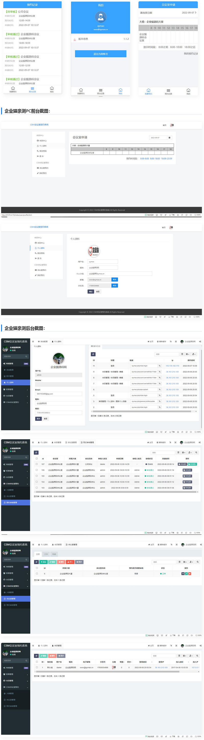 系统后台提供了会议室的管理功能,用户可以手机端和电脑端来预约会议室。