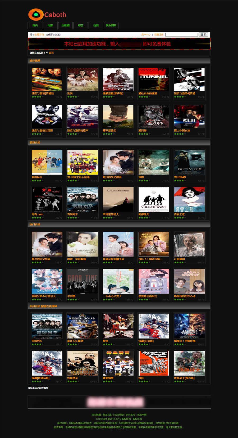 分享一款苹果cms V8版本的caboth黑色风格主题模板,复古简约风格,模板非常简单,只有影视模块,自带许多广告位。