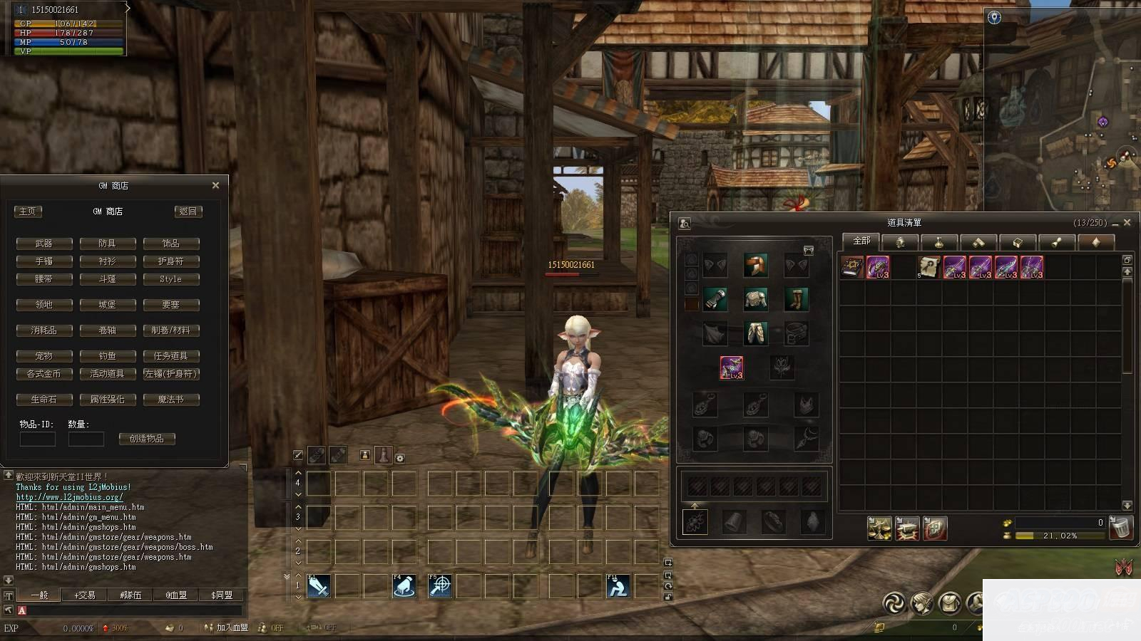 进入游戏后录入 //admin 打开GM控制面板