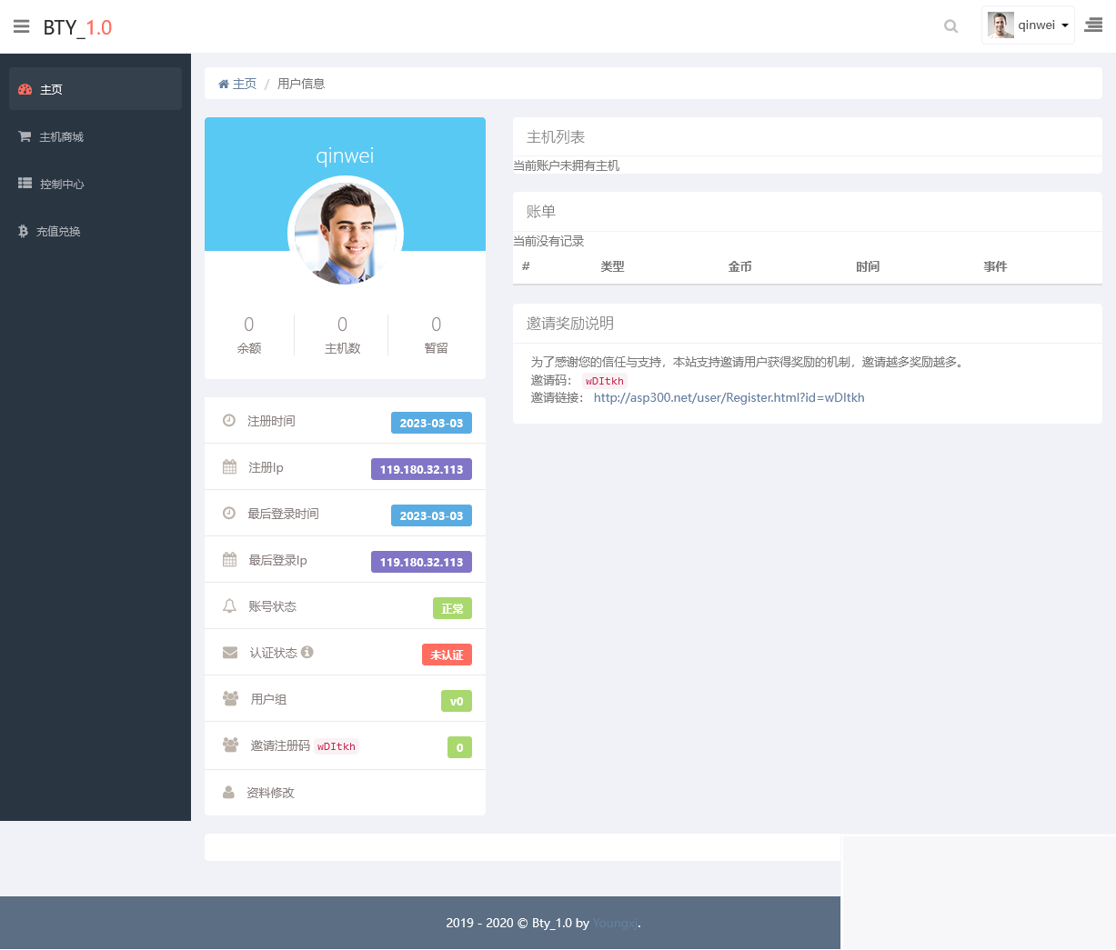 该系统基于宝塔开放API底层控制器,进行主机控制,目前可以完成大部分主机操作功能如:新增主机、修改主机配置、删除主机、查找主机、以及宝塔面板能开放使用的主机操作功能,由于宝塔面板的单一用户性,所以开发这款可以由个人操作的IDC分销系统。