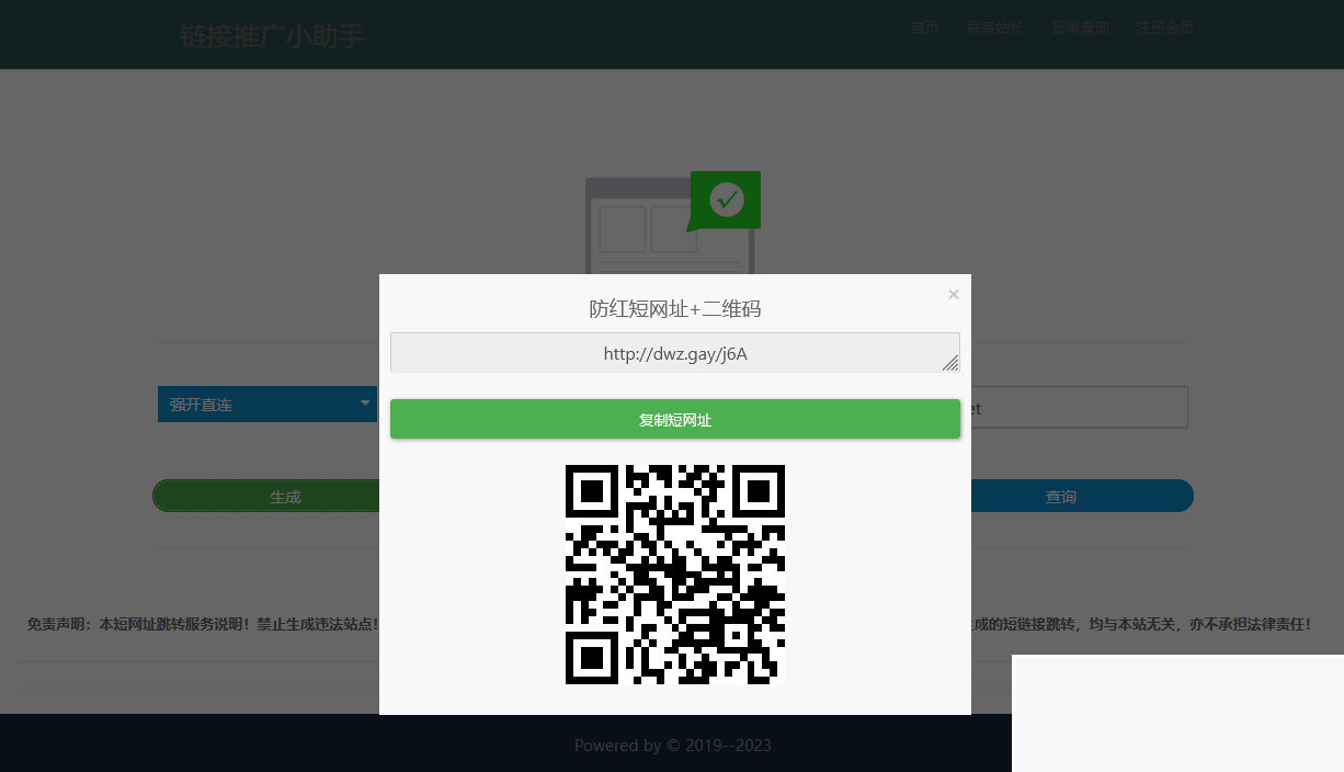 在线生成防红短链接php源码,选择直连/跳转两种模式任意一个即可 禁止生成违法网站,没有联系方式,没有任何违规,纯公益网站。