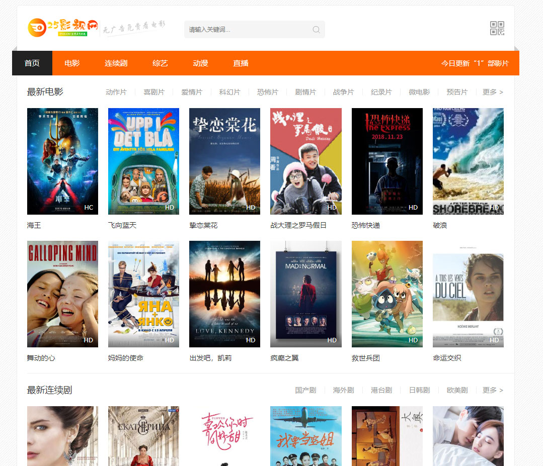 苹果cmsv10橙色风格影视网站响应式模板 自适应手机端