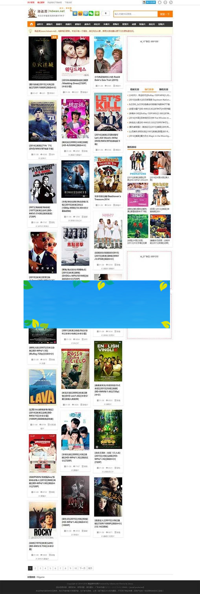源码介绍 非常干净的电影BT源码模板,提供bt种子下载以及电影磁力连接(手机平板可以自动调用迅雷播放)支持采集,麻雀虽小五脏俱全,此站百度来路虽然只有5KIP,但主动访问的用户非常多世界排名很高,用户体验非常之好。还在想做电影站,但对市面上那些眼花缭乱的电影网站模版没有一点欲望吗?那么来吧。