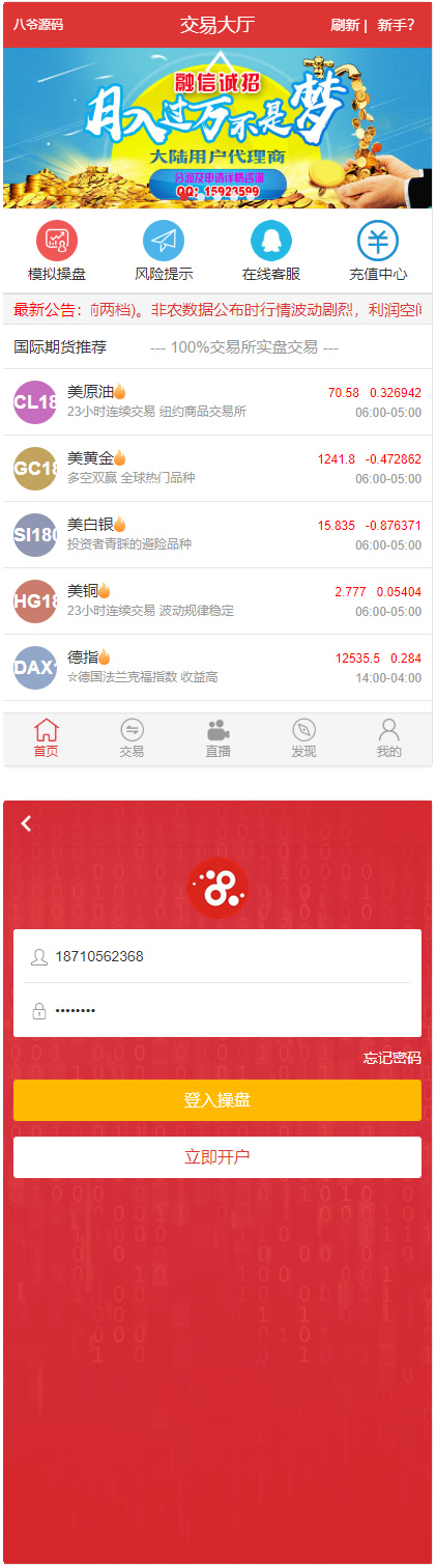 这个东西你们看了截图就知道了,反正很大气,然后他还加了一个直播页面,当然直播你可以对接任意你自己的。