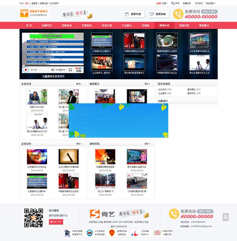 destoon6.0模板 B2B建材招商加盟平台网站源码 带手机WAP版+测试数据,PC版和手机版界面都非常美观。