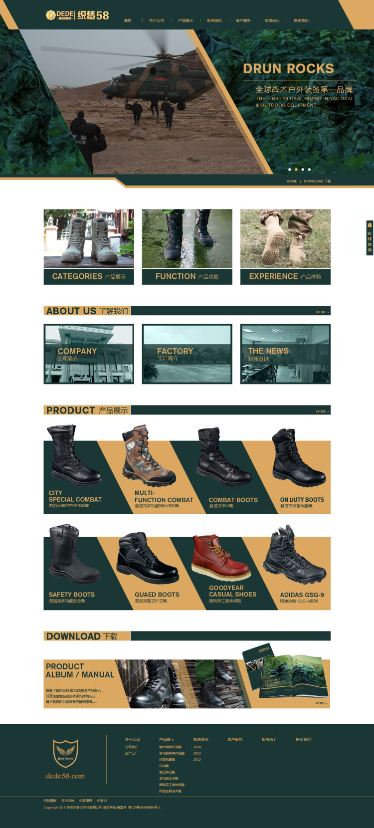 织梦dedecms军绿色户外装备鞋业公司网站模板