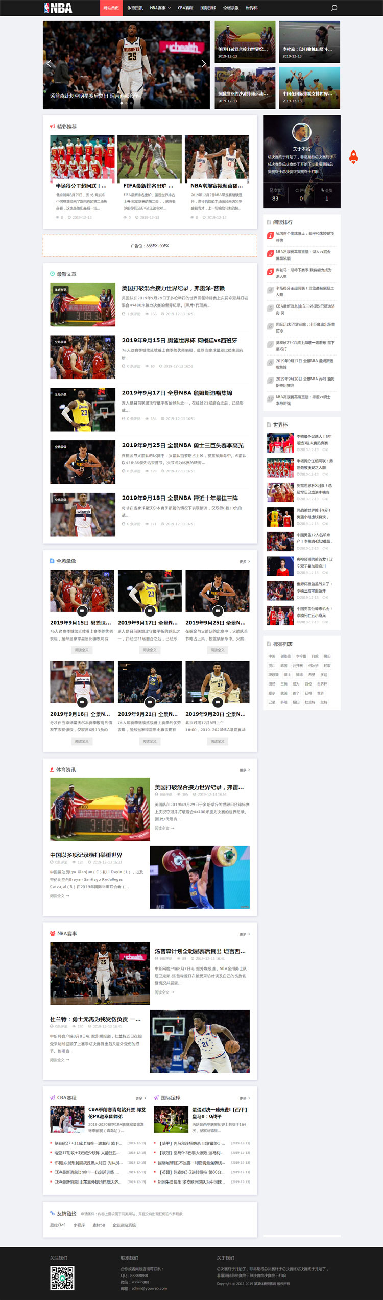 织梦最新内核开发的模板,该模板属于HTML5响应式、体育新闻、体育资讯类企业使用,一款适用性很强的模板,基本可以适合各种资讯网站!
