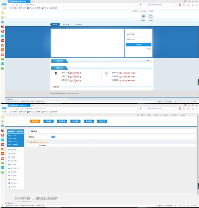 (前台模板数据需在后台-模板设置-响应式蓝色模板 里面设置)