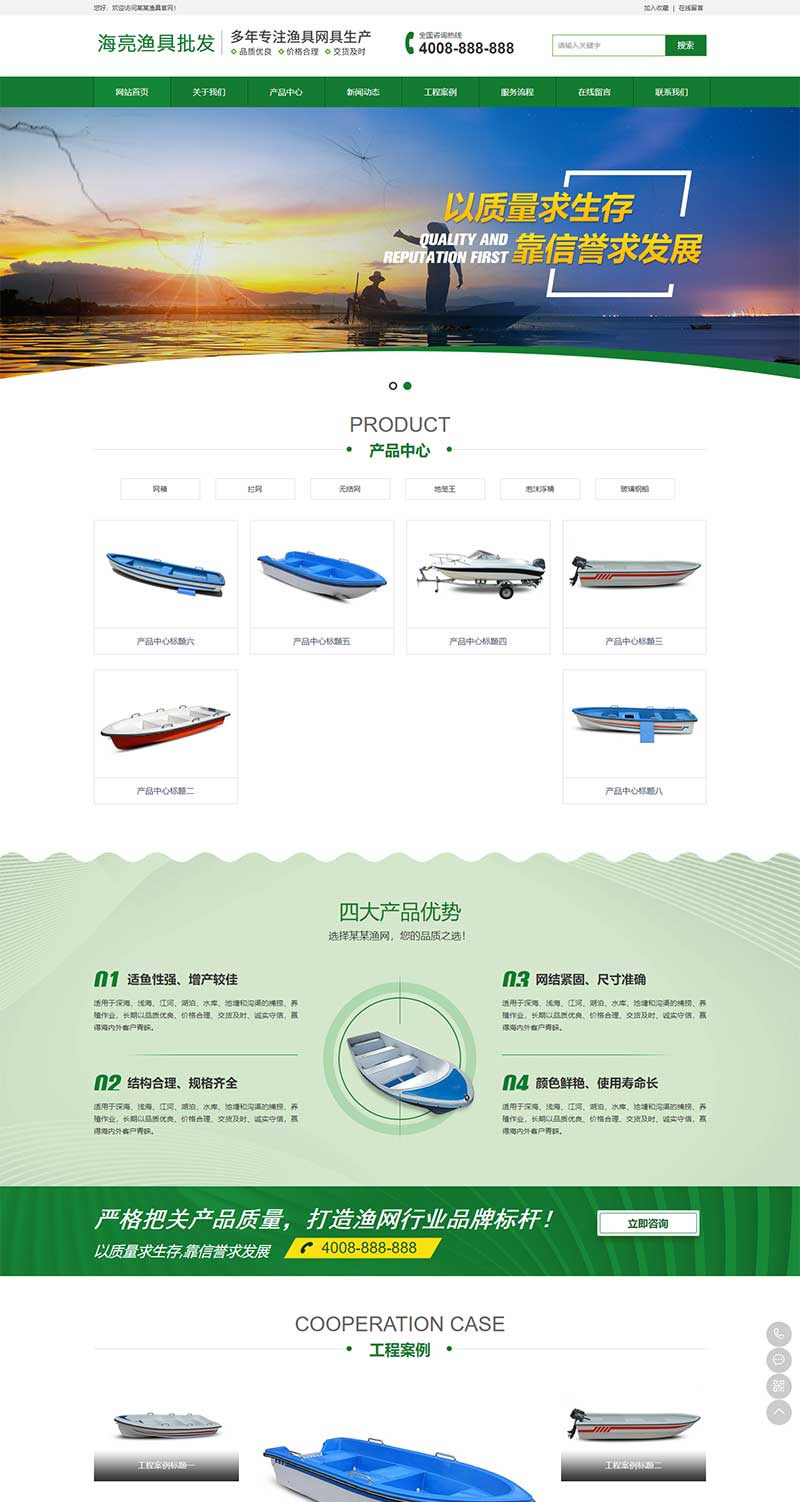 本套织梦模板采用织梦最新内核开发的模板,这款模板使用范围极广,不仅仅局限于一类型的企业,渔具批发、农林牧渔类的网站都可以用该模板。你只需要把图片和产品内容换成你的即可,颜色都可以修改,改完让你耳目一新的感觉!布局规整,利于用户体验,手工书写DIV+CSS,代码精简。