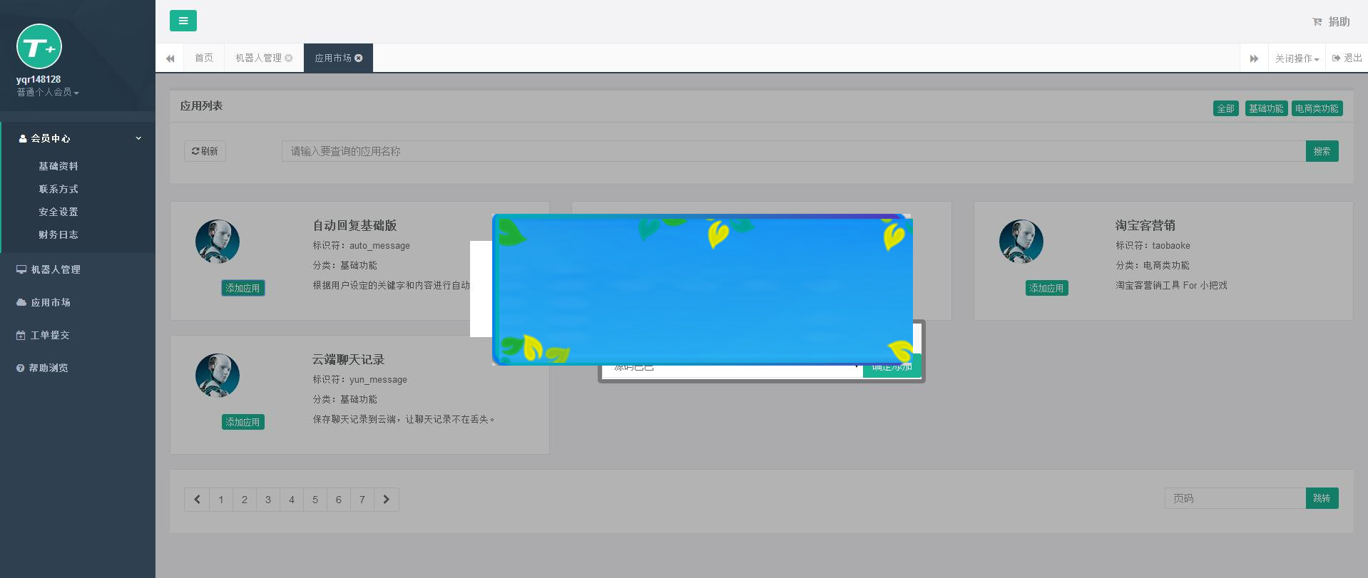 微智创 T+ 微信机器人,所有官方服务均可免费使用,内置应用市场更有海量应用供您挑选,开发者者模式还可以提交您的创意到官方应用市场,展示您才华的同时赚取佣金。