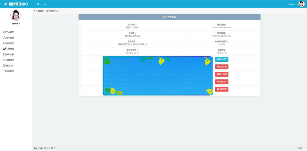 5:进入后台奔放: 你的域名/admin (默认账号密码:admin 123456)