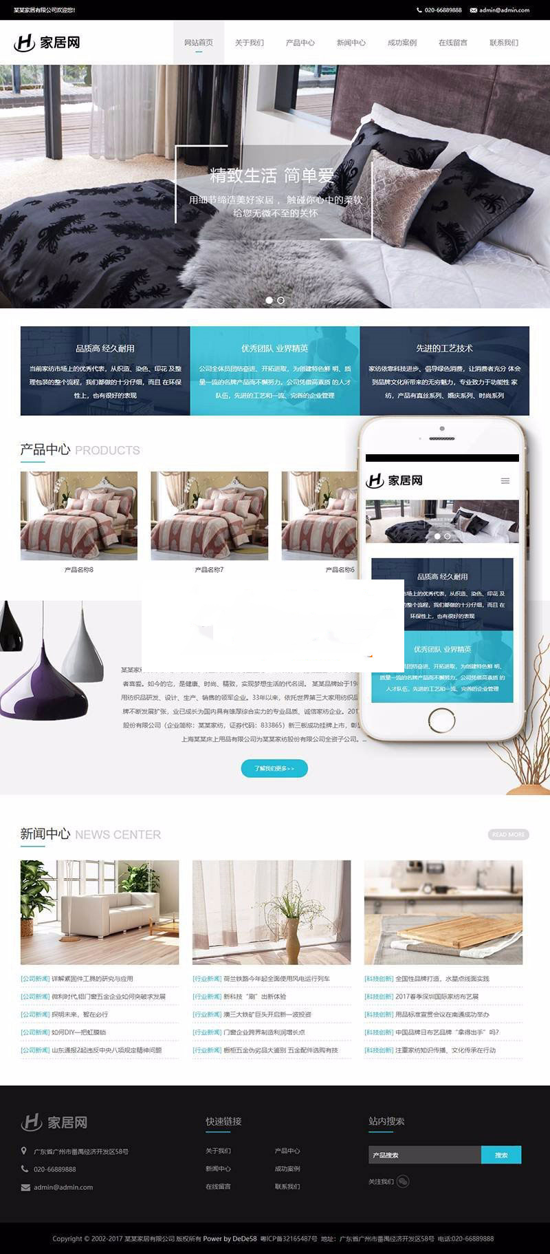 织梦dedecms响应式家居家纺纺织品企业网站模板(自适应手机移动端)
