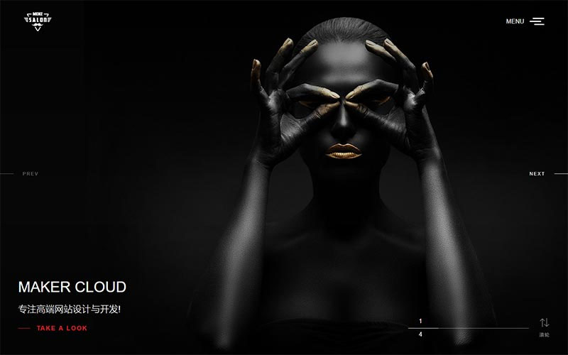2、效果相当的炫酷,相当简洁大气高端,模板简单,全部已数据调用,只需后台修改栏目名称即可