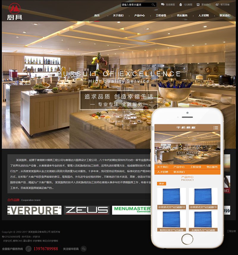 厨具工程设备类织梦模板(带手机端)+PC+移动端+利于SEO优化