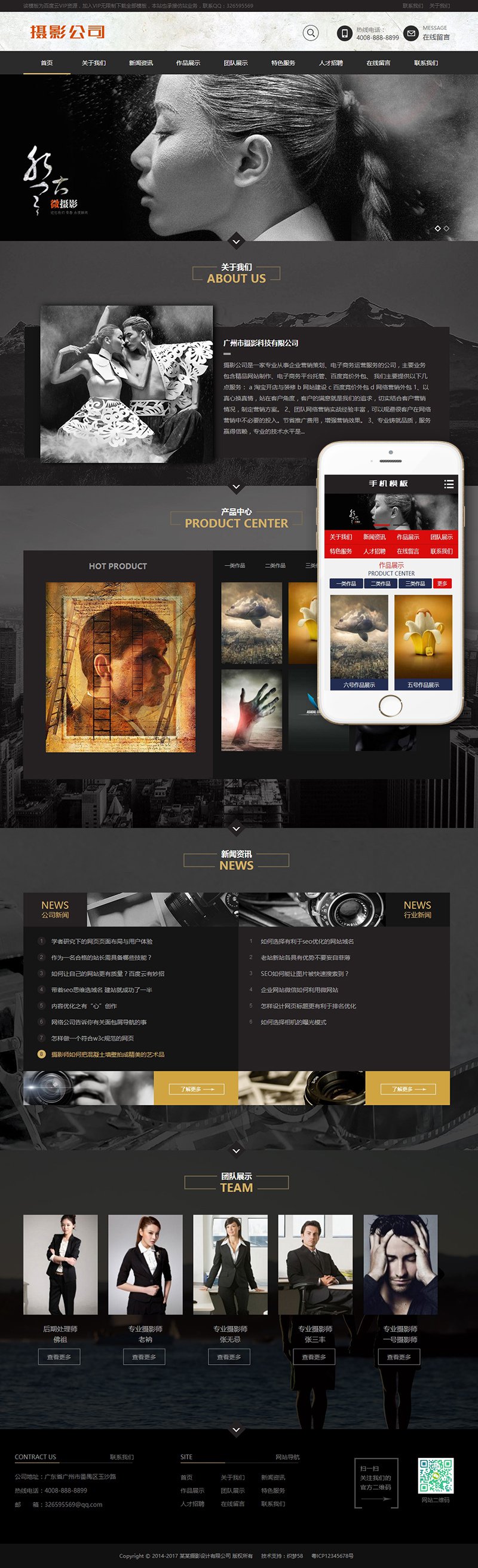 黑色高端摄影设计类织梦模板(带手机端)+PC+移动端+利于SEO优化