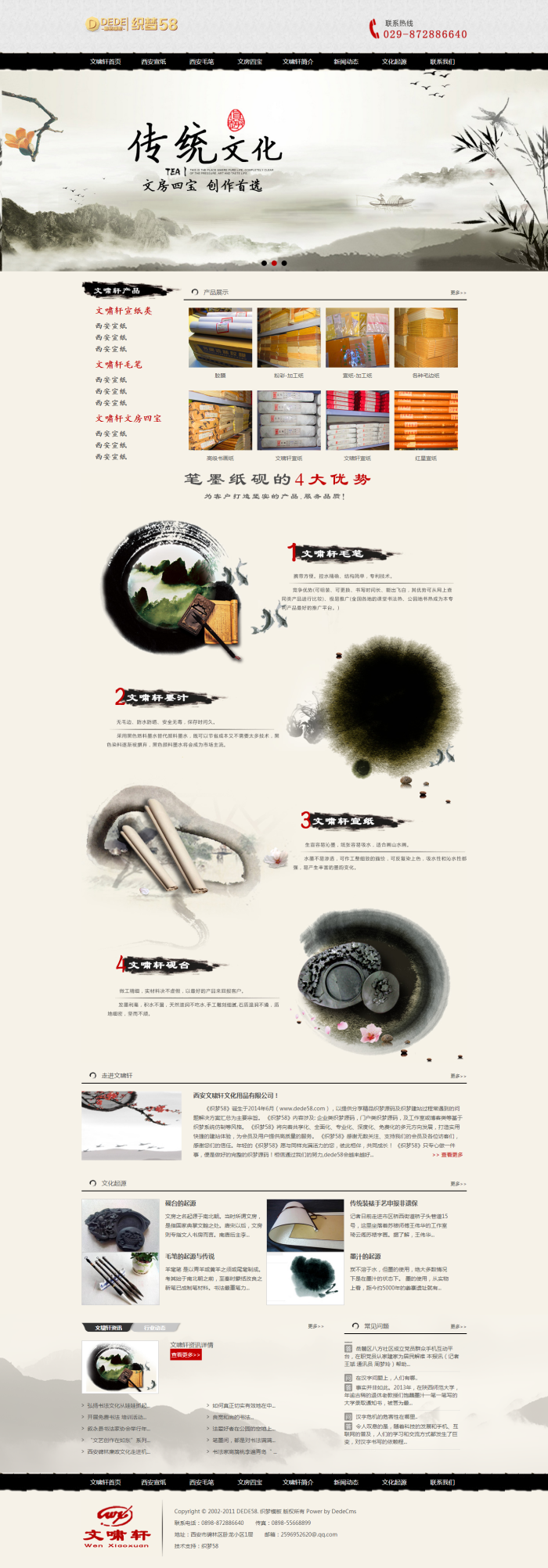 文化书画用品类企业织梦源码,效果相当的炫酷,相当简洁大气高端,模板简单,全部已数据调用,只需后台修改栏目名称即可。