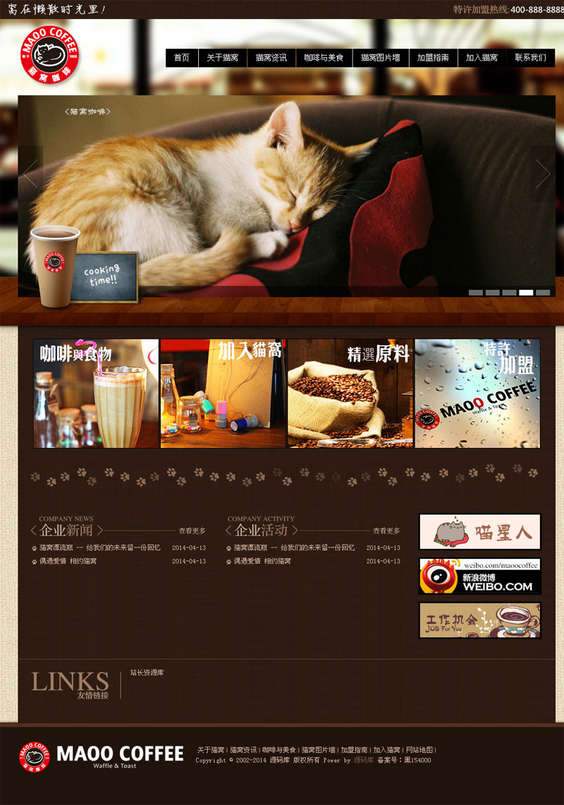 餐饮咖啡类企业华丽dedecms模版,效果相当的炫酷,相当简洁大气高端,模板简单,全部已数据调用,只需后台修改栏目名称即可。