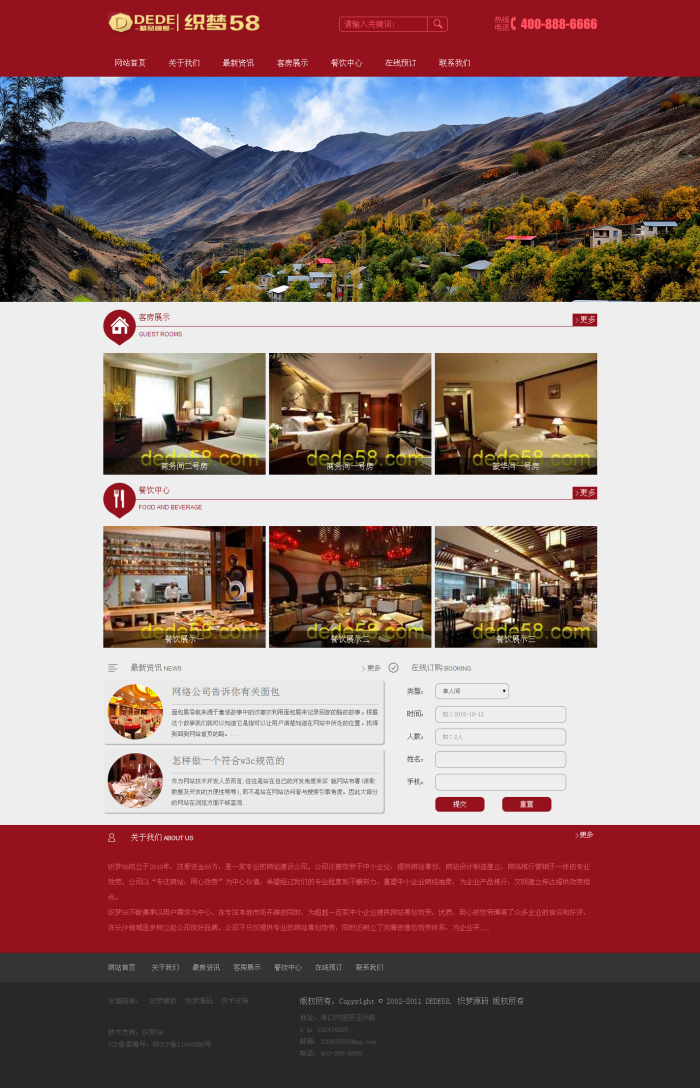 红色酒店旅馆餐饮类网站织梦模板,效果相当的炫酷,相当简洁大气高端,模板简单,全部已数据调用,只需后台修改栏目名称即可。