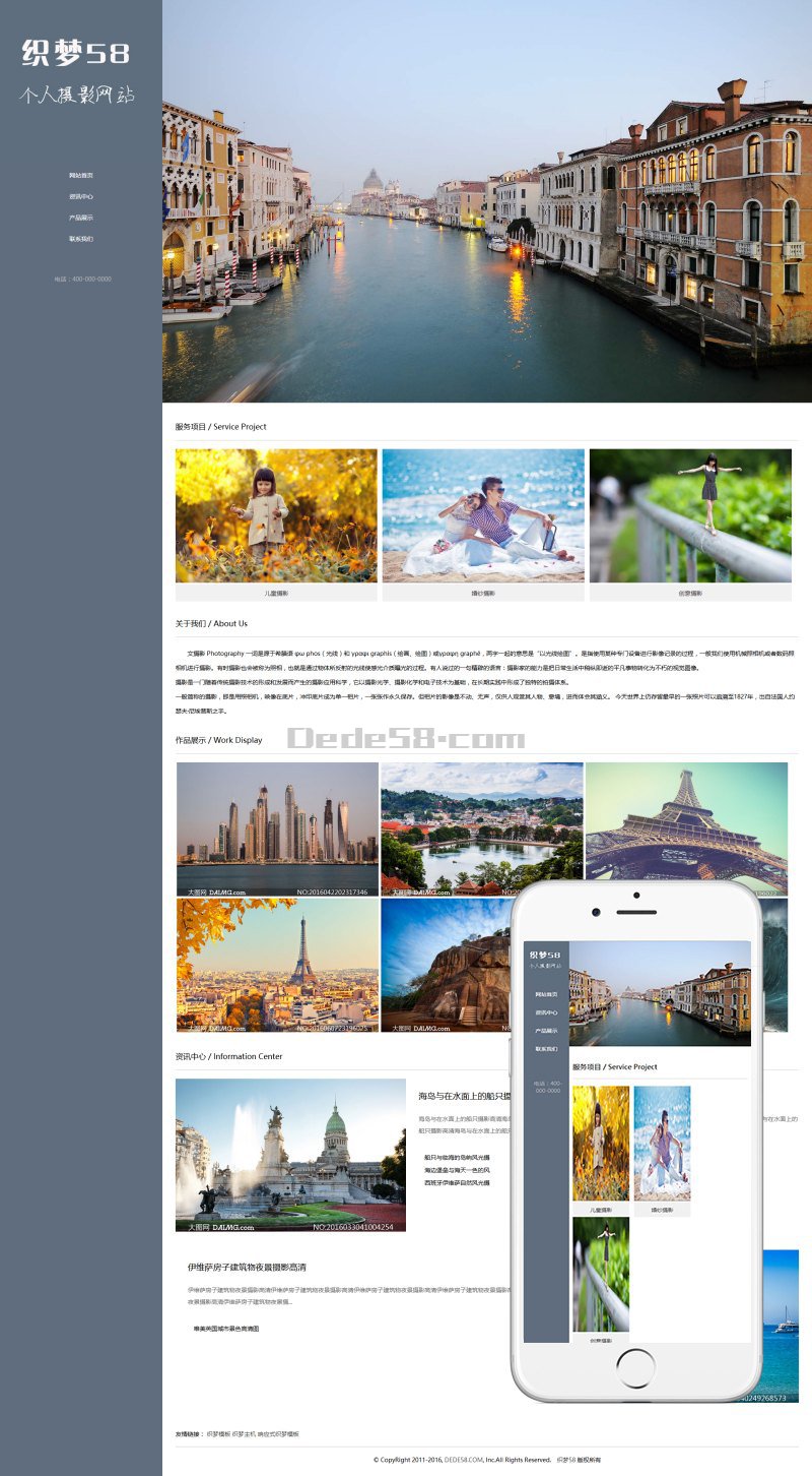 响应式自适应个人摄影博客整站织梦程序