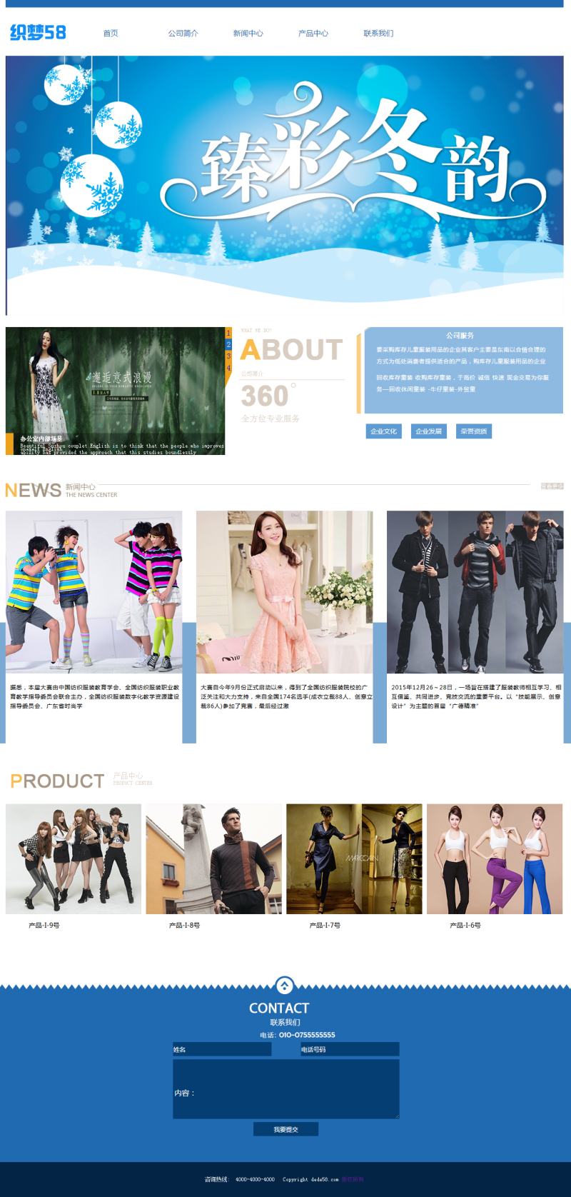 适合做服装产品展示类企业网站使用,小清新的蓝色风格!