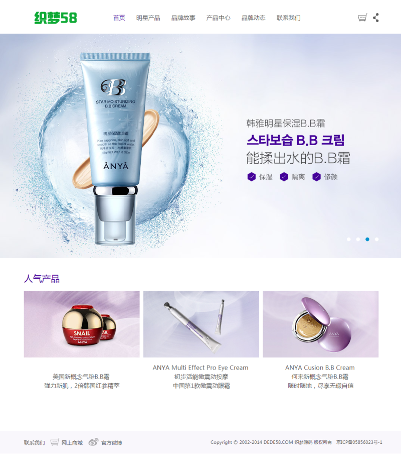织梦最新内核开发的模板,该模板属于企业集团通用,化妆品美容护肤品产品类企业,