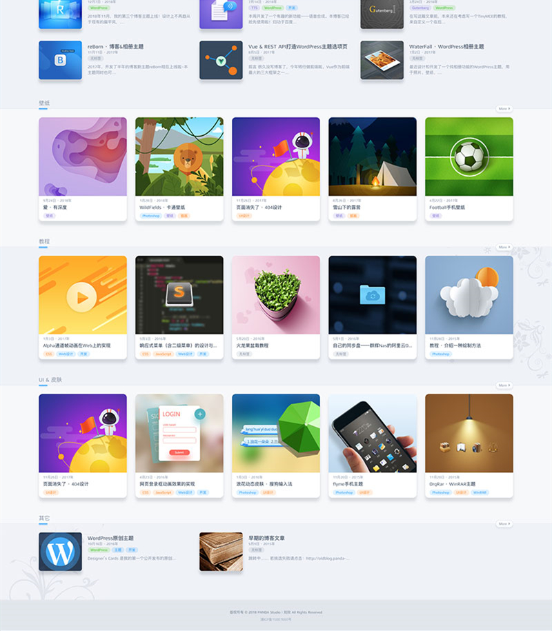 瀑布流 文章列表可选择卡片或列表排序,其中卡片又可设置为普通或瀑布流形式