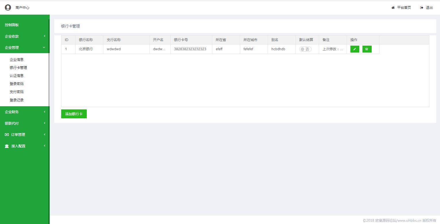 后台账号admin 密码www.ohbbs.cn