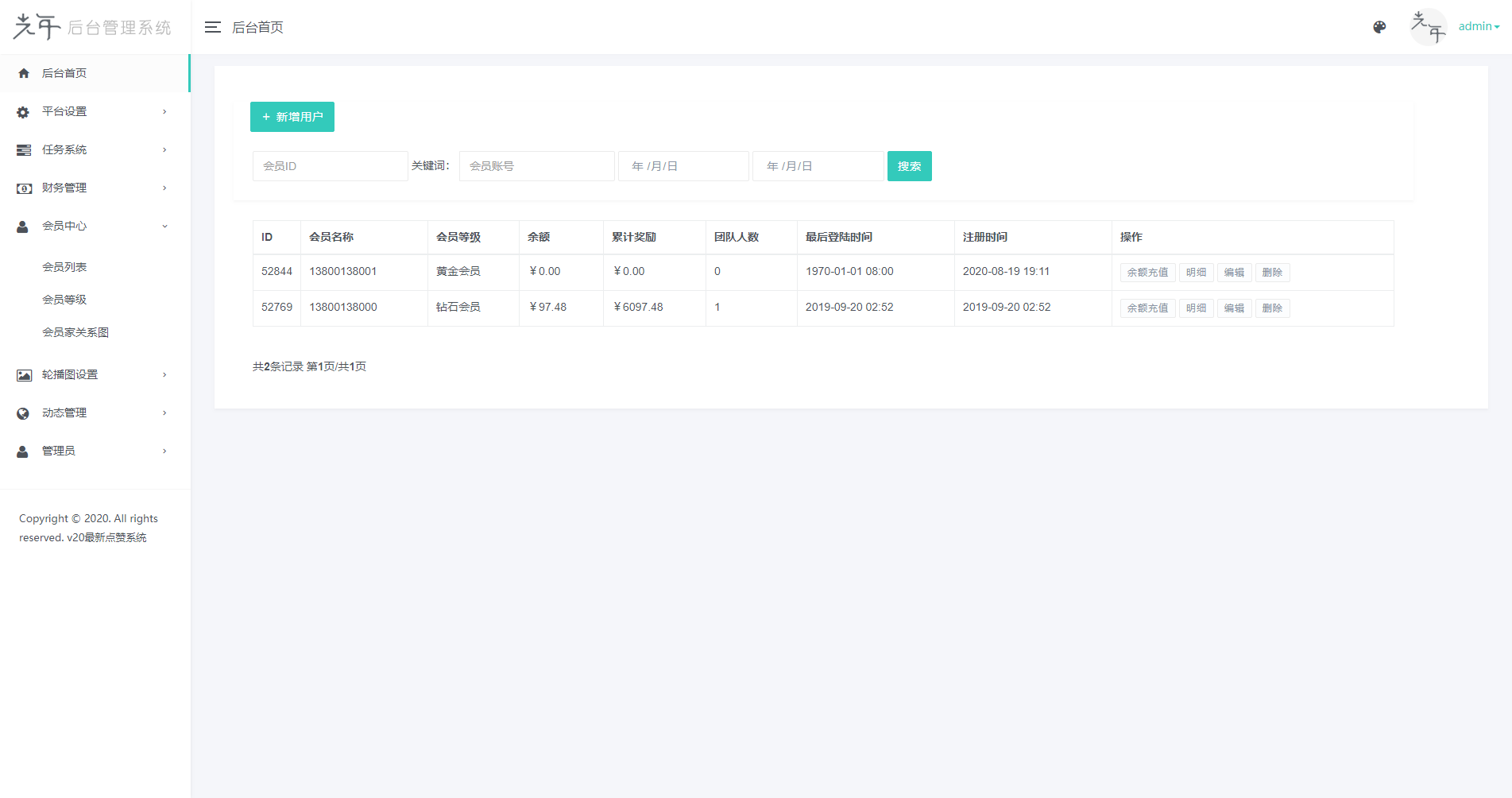 前台账号:13800138000