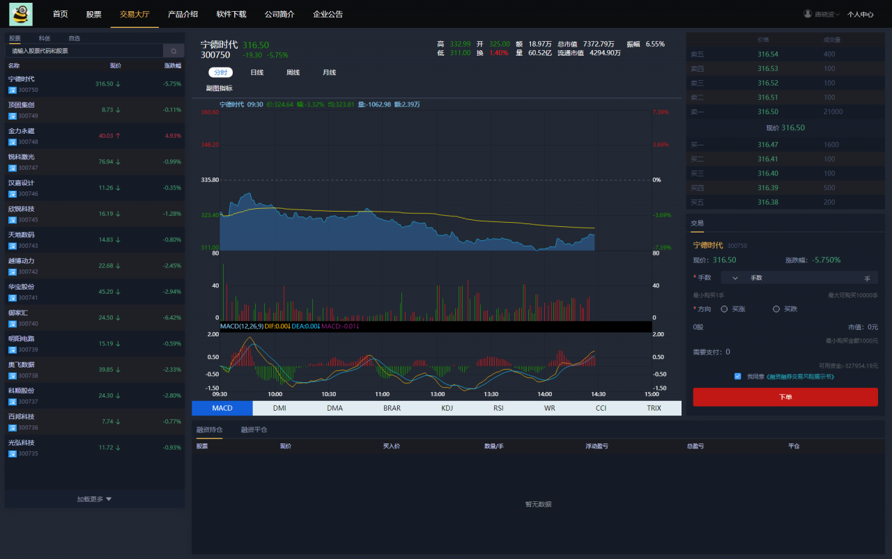 全系股票交易系统,开发语言是Java框架结构spring前台vue构架 系统分电脑网页端,手机双端,支持打包APP,有代理单独后台。 系统经过上线测试,K线数据完整对接,分时走势正常 演示是别人的能用多久就不晓得了 演示PC端:http://cs.yeyueyun.cn:8811/homes/index.html#/home 账号15888888888密码123456 演示手机端:http://cs.yeyueyun.cn:8811/wap/index.html#/home 账号15888888888密码123456 演示代理端:http://cs.yeyueyun.cn:8811/agents/index.html#/login 账号15888888888密码123456