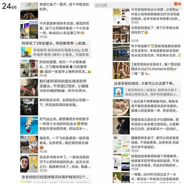 朋友圈的内容,多分享跟宠物相关的内容,还有个人的生活。