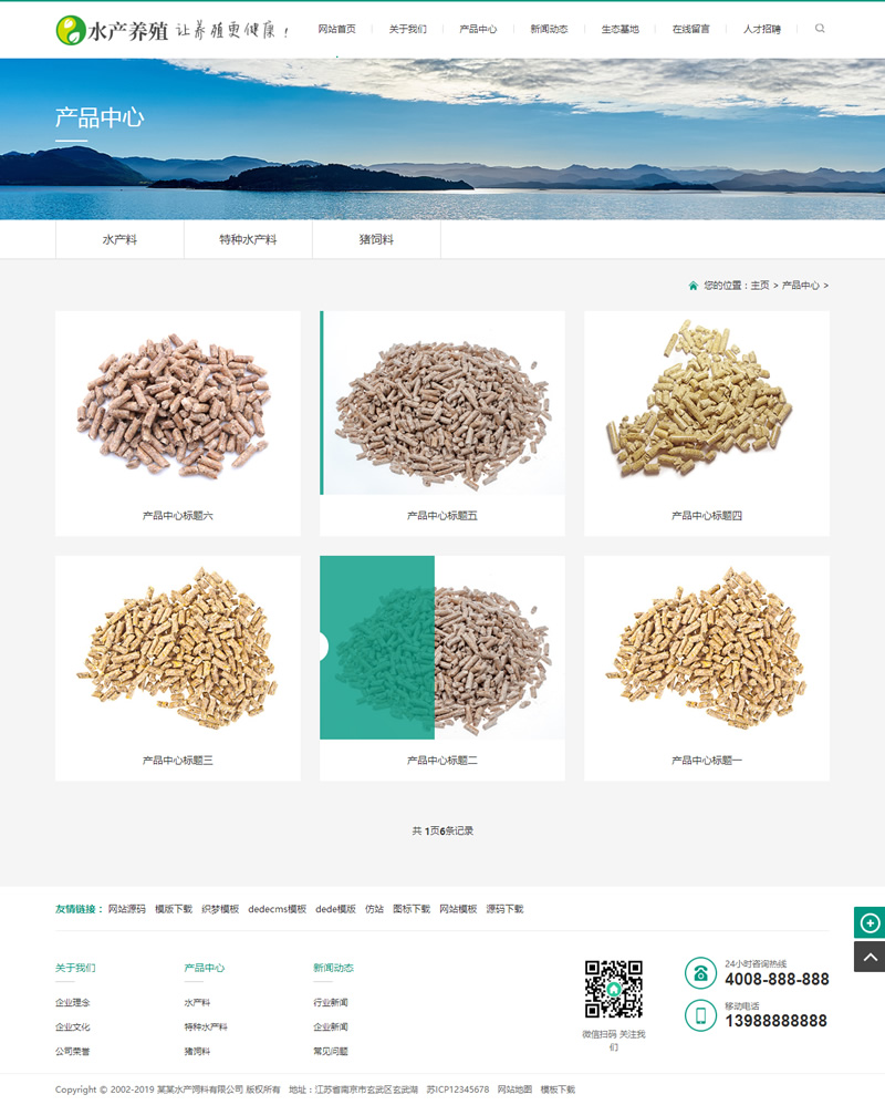 3、适用于水产饲料织梦模板、养殖生产网站源码;