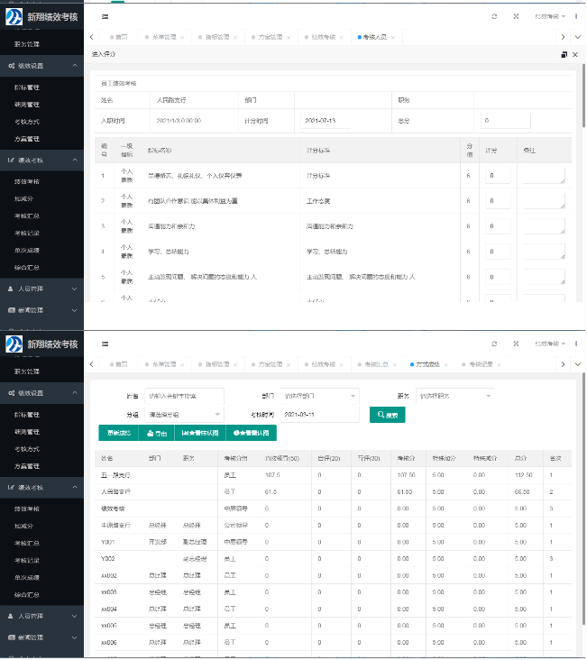 考核查询功能:可以查询每个员工每项得分的详情,并可以导出为excel格式。
