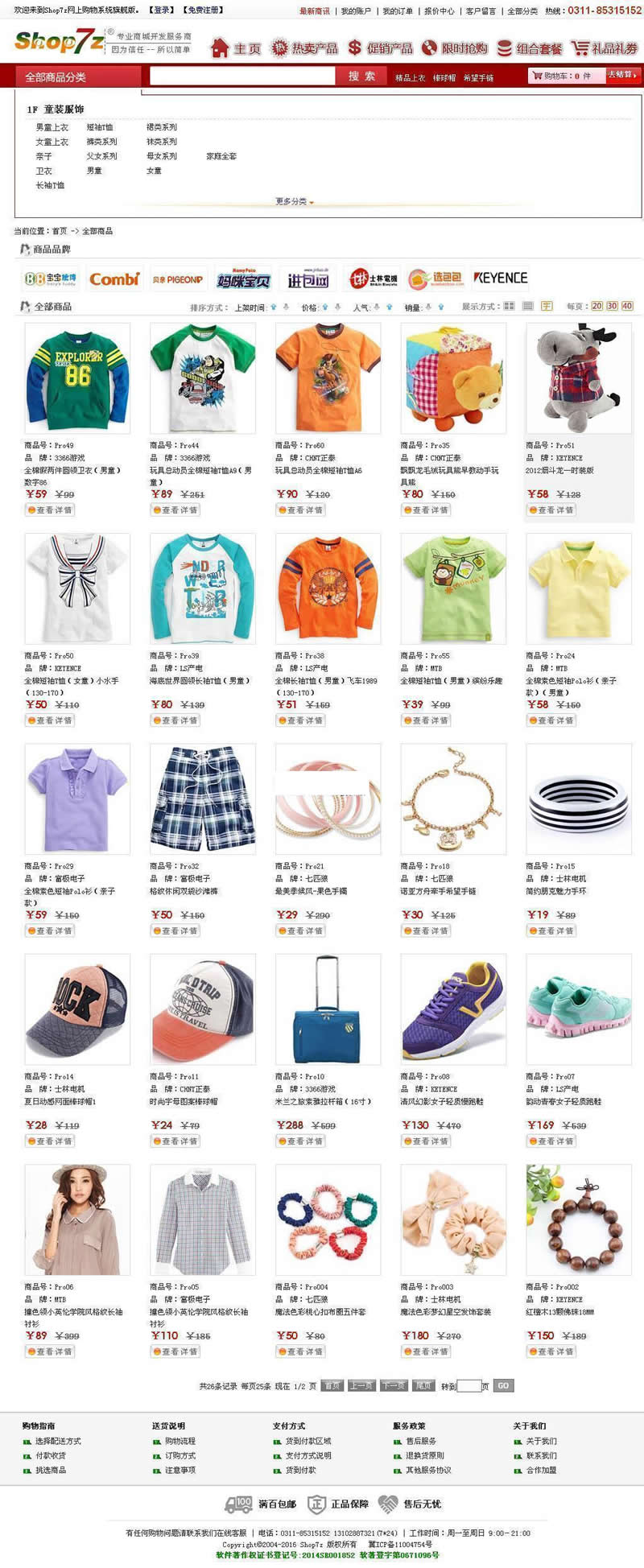 Shop7z网上购物系统支持电脑版+手机版+支付宝及微信支付,支持QQ和微信一键登陆,系统集众家之所长,大气超美观页面+手机版+商品组合套餐+限时抢购秒杀+图片批量上传+淘宝数据包导入+弹出式分类菜单+不同规格不同价格+新订单邮件通知+销售报表打印与Excel输出+物流跟踪打印查询+会员积分及优惠券+邮件群发+图片在线管理+销售统计报表+五种价格体系+礼品礼券+微信公众号支付+扫码支付等等等。