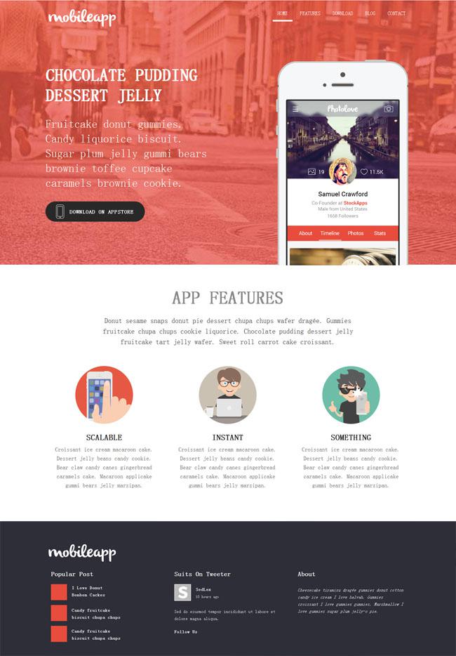 苹果APP软件企业模板是一款红色大气的iPhone手机软件开发企业网站的模板下载。