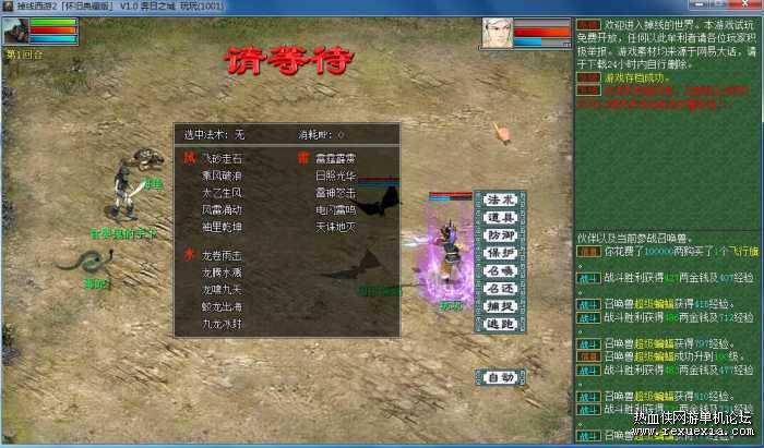 此游戏需要在渔村砍到10级,然后去长安过1称。1-10称都跟官方一样,此单机版本需要5开,开局就送老版神兽蝙蝠,也可组野人,方法均是10级后,击杀剧情中后,给袁天罡指定药品后开启组队系统。具体打开就明白了,都在剧情任务提示中。 野人50级会放5法, 组队范围是人物等级±5级,所以理论上45级就可以组4个50级的野人进行升级。野人的人物属性点,召唤兽属性点均为随机加点,建议在人物可以做天的情况下带小伙伴(五开)进行游戏。
