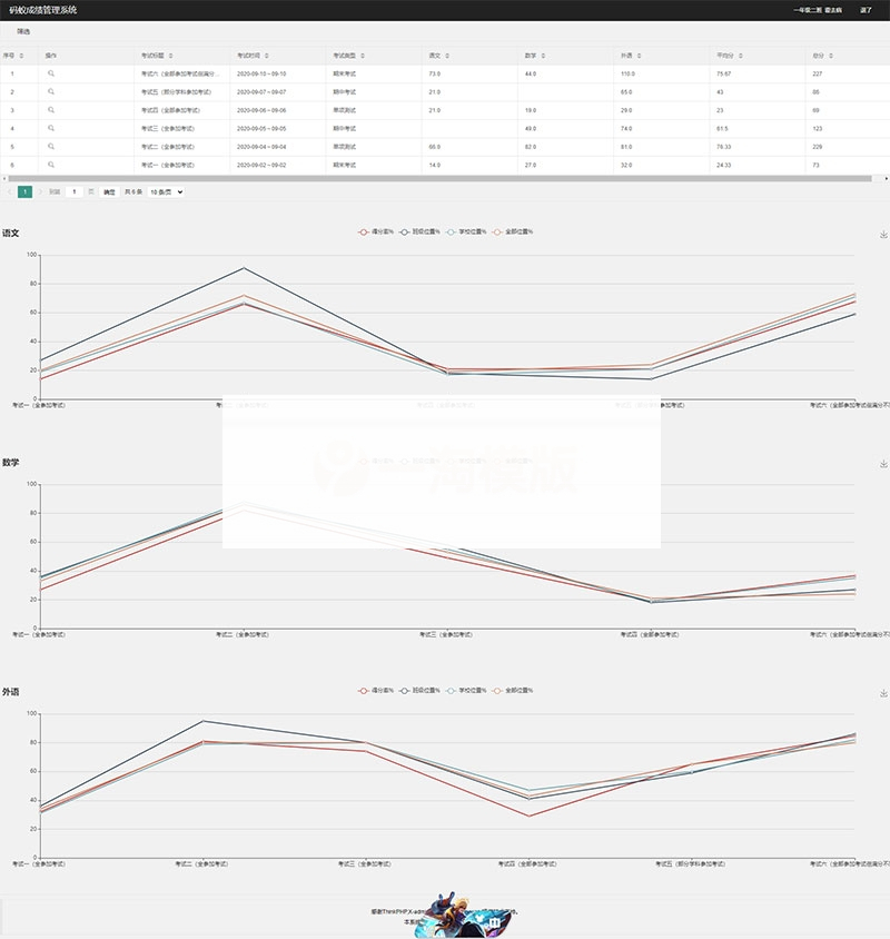 3、学期、班级、学科管理、班级历次考试成绩查询